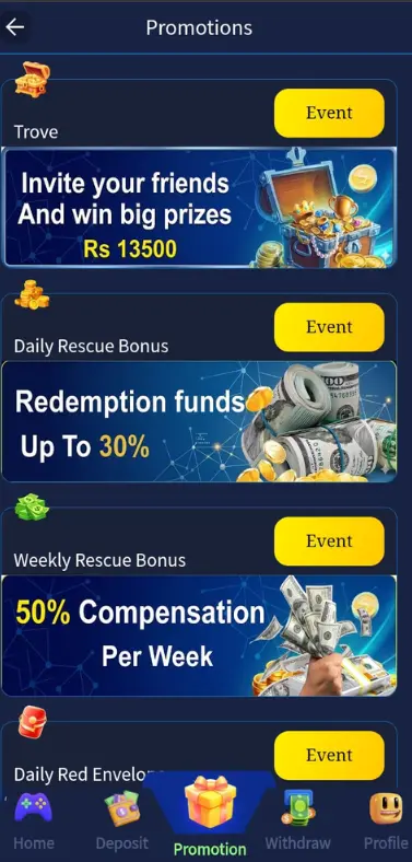 The app offers login rewards, activity gifts, and event-based bonuses that help players start strong even with minimal balance. These bonuses reduce risk and allow users to test different games without pressure. Special tasks and seasonal events provide additional rewards, creating a sense of progression.
